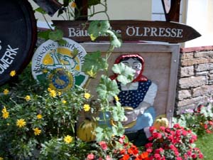 Musik, Wein und Kernöl. Drei Begriffe, die untrennbar mit dem Steirischen Weinland verbunden sind. Wir besuchen eine der letzten bäuerlichen Ölpressen und kommen aus dem Staunen nicht heraus. Frau Christine Farmer-Rabensteiner erklärt uns den Vorgang des Pressens, wo bei sie darauf hinweist, dass bei ihr nter einer Temperatur von lediglich 60 bis 70 Grad nur hofeigenes Kürbiskernöl erzeugt wird. Dieses Qualitätsprodukt wird im Hause vielseitig weiter verarbeitet.