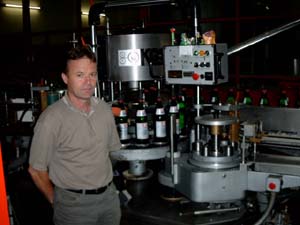 Foto: Standortleiter Josef Hammler vor der Etikettiermaschine